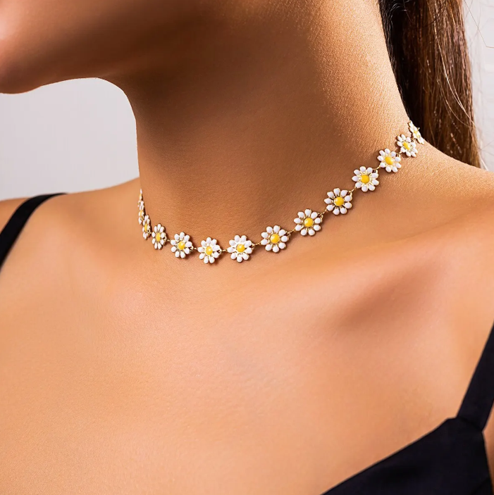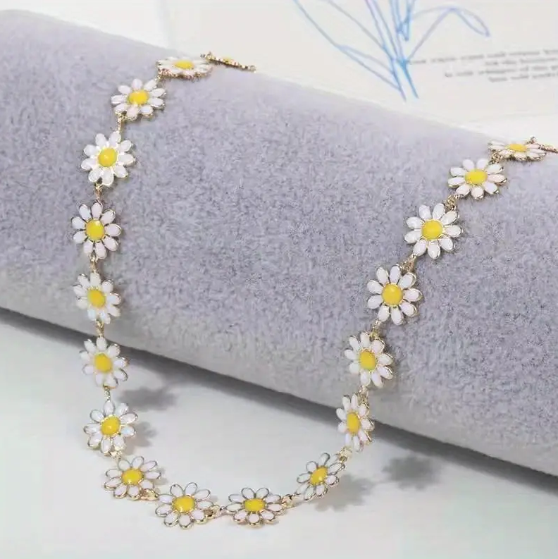1pc Small Daisy butterfly Jewelry Set Flower Necklace, Vintage Stainless Steel Gold Plated Necklace For Women
