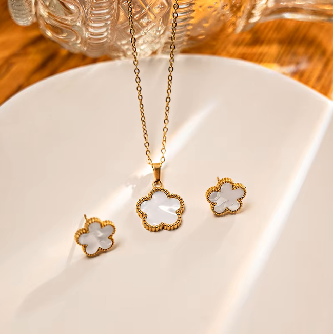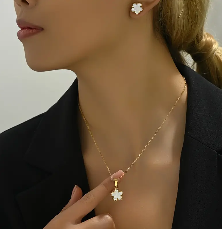 Flower Decor Pendant Necklace And Stud Earrings Set, High Quality Jewelry For Women