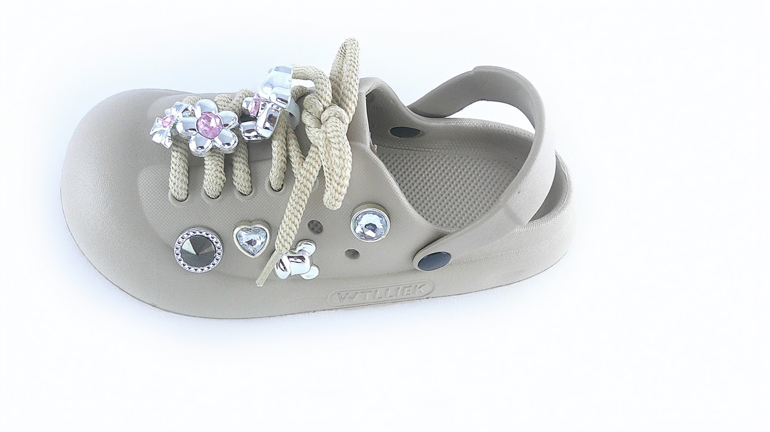 Women's Breathable Summer Clogs with Lace- Casual Solid Color, with 14 Pcs Cute Daisy and Butterfly Shoe Charms , DIY Plastic Shoe Accessories Decorations Kit