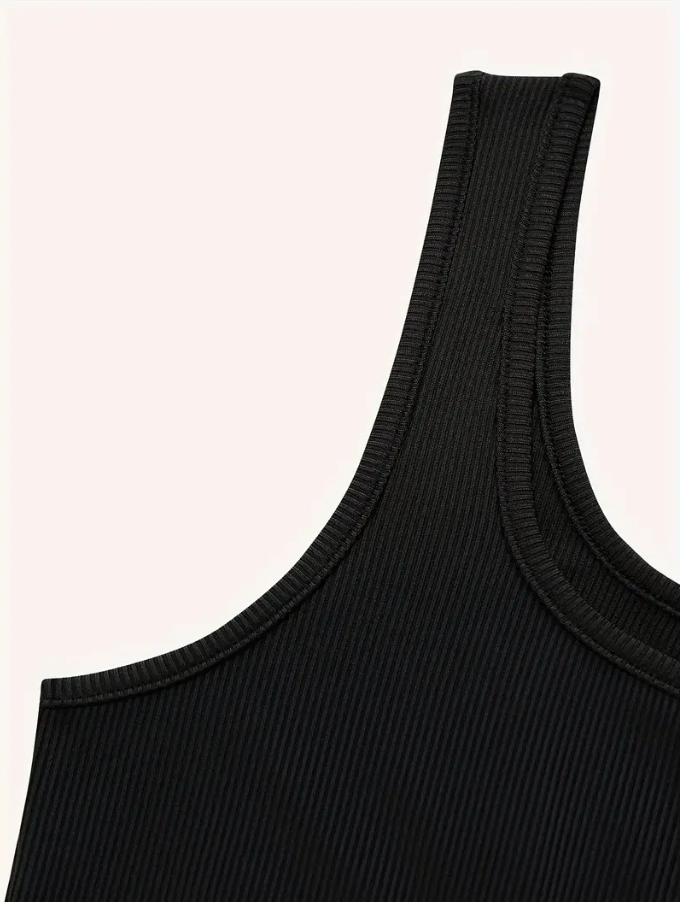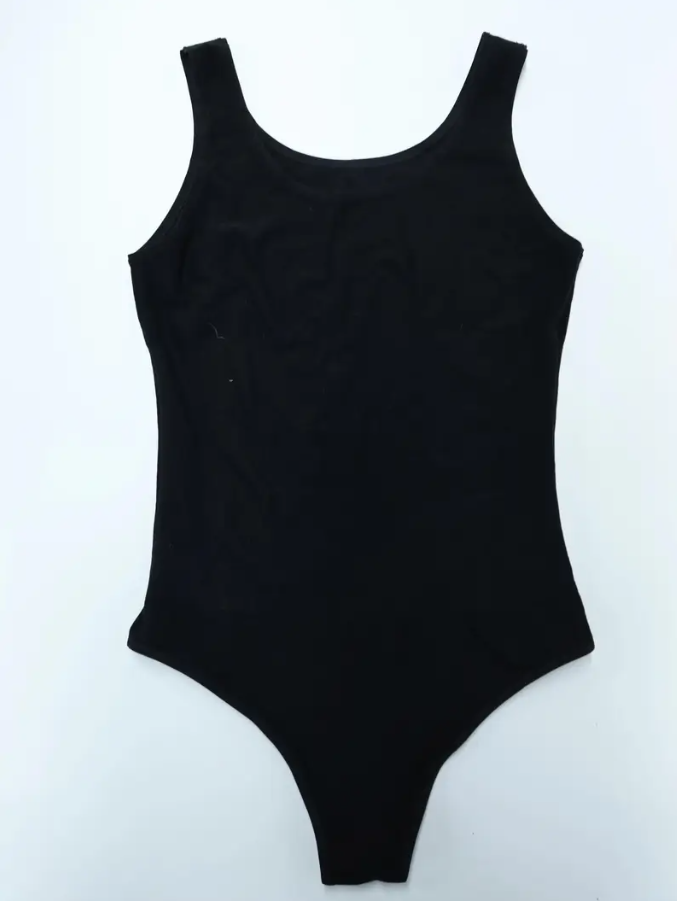 Women's Slim Fit Bodysuit & Clothing, Black High-Cut One-Piece Bodysuit- Comfortable, Stretchy, Sleeveless, Solid Colors