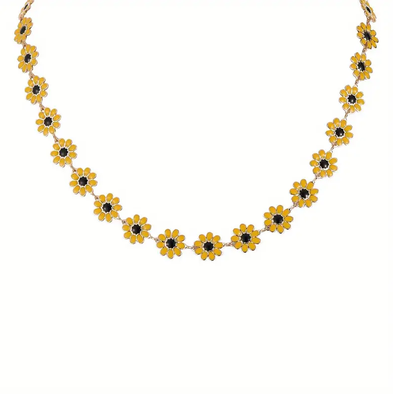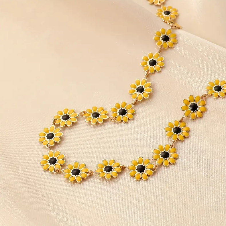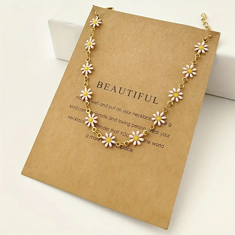 1pc Small Daisy butterfly Jewelry Set Flower Necklace, Vintage Stainless Steel Gold Plated Necklace For Women
