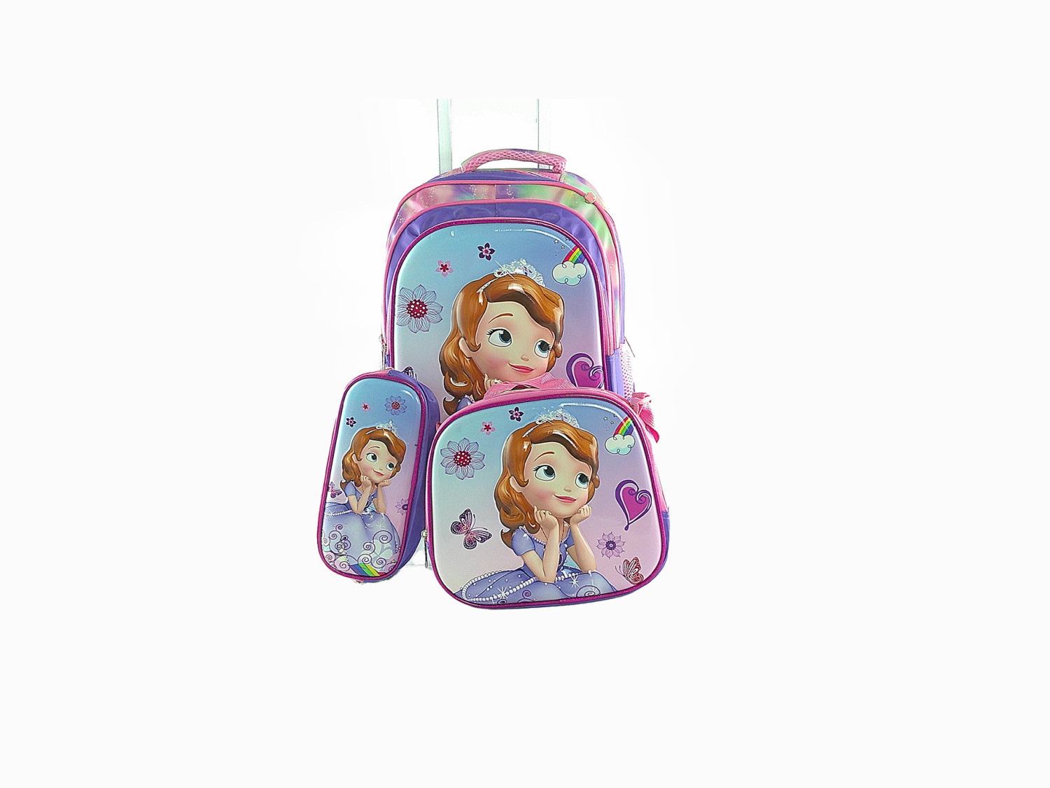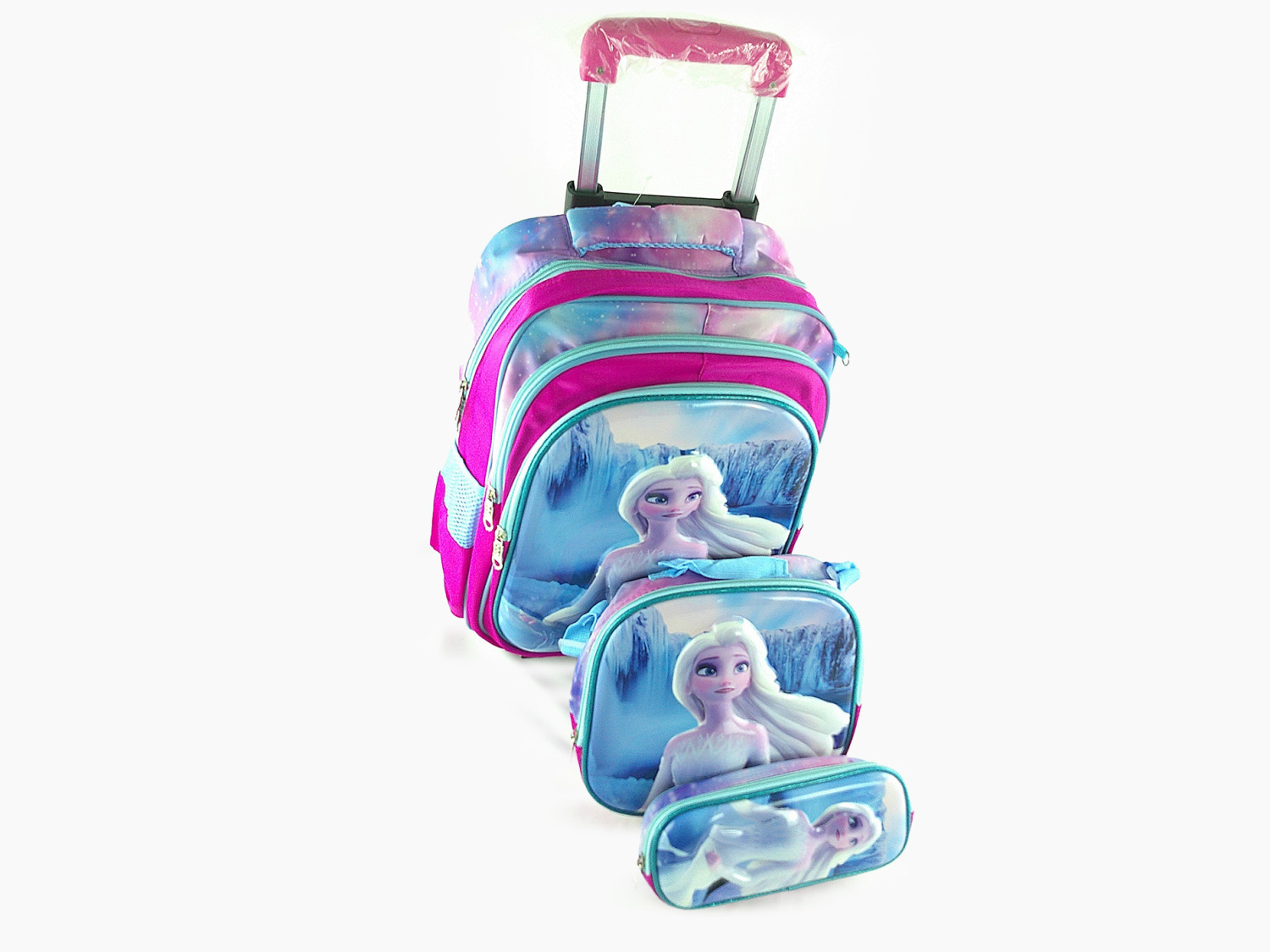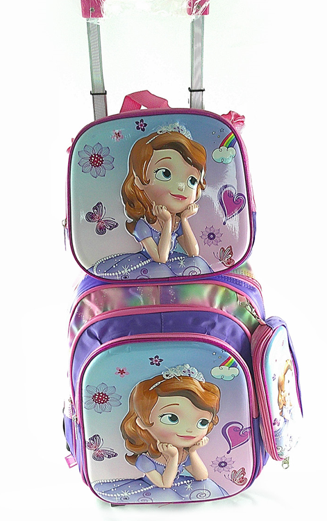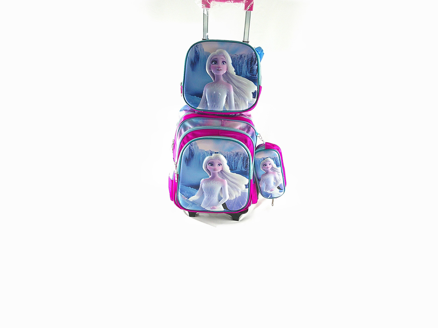 3Pcs Set Cartoon Themed Rolling Backpack For Girls, Roller Bag With Lunch Bag Wheeled School Bag