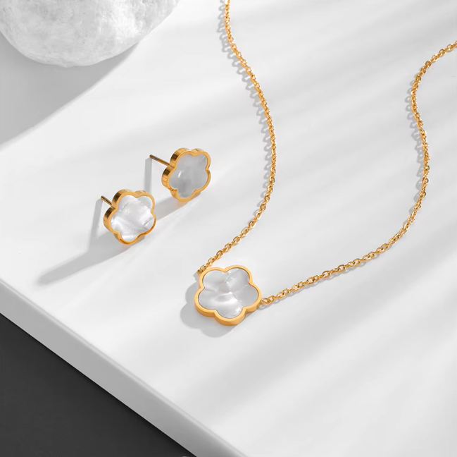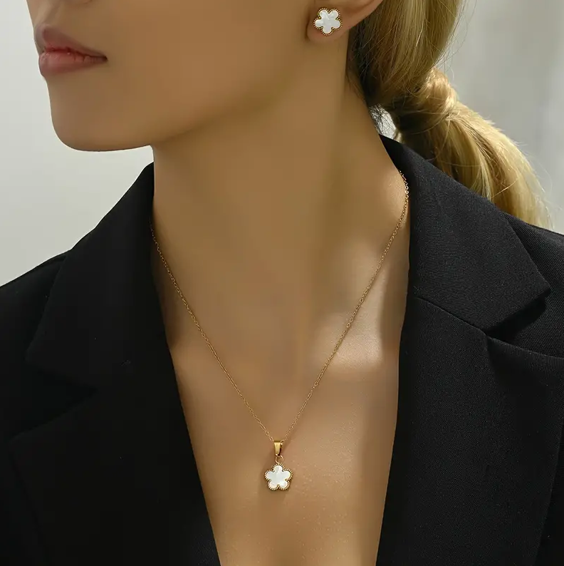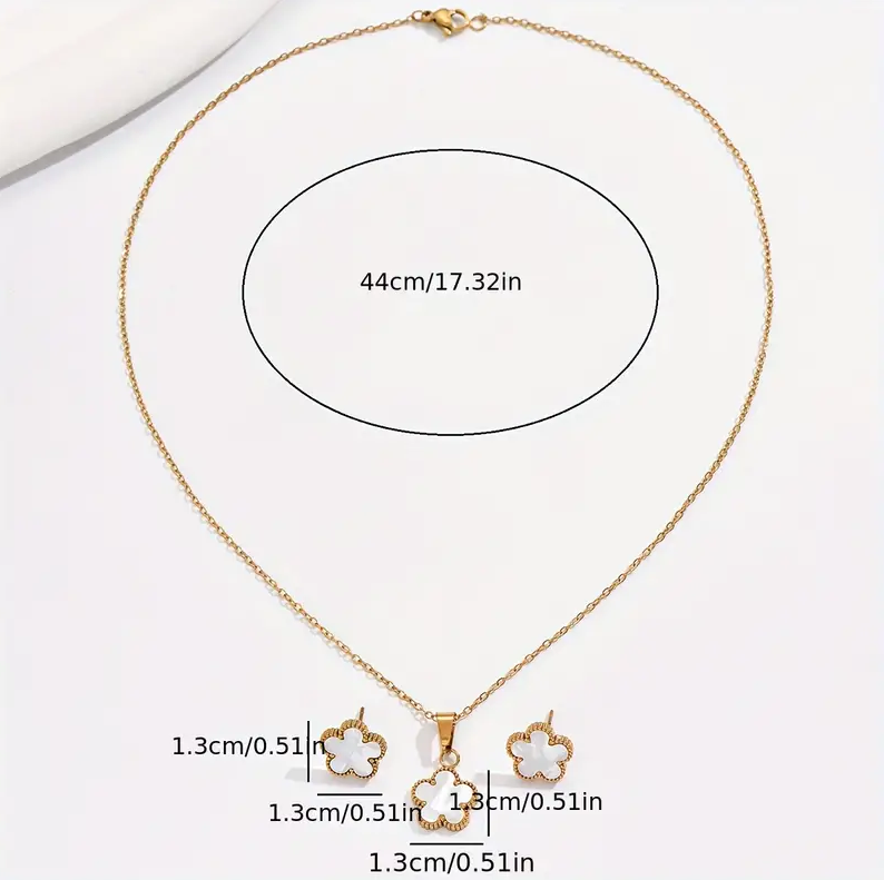Flower Decor Pendant Necklace And Stud Earrings Set, High Quality Jewelry For Women